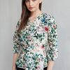 Daniella to bluzka o kroju kopertowym z wszytą szarfą i rękawem 3/4 wykończonym marszczeniem przy mankiecie. Baskinka delikatnie opływa sylwetkę, podkreślając atuty figury. Bluzka uszyta jest z przewiewnej bawełny.