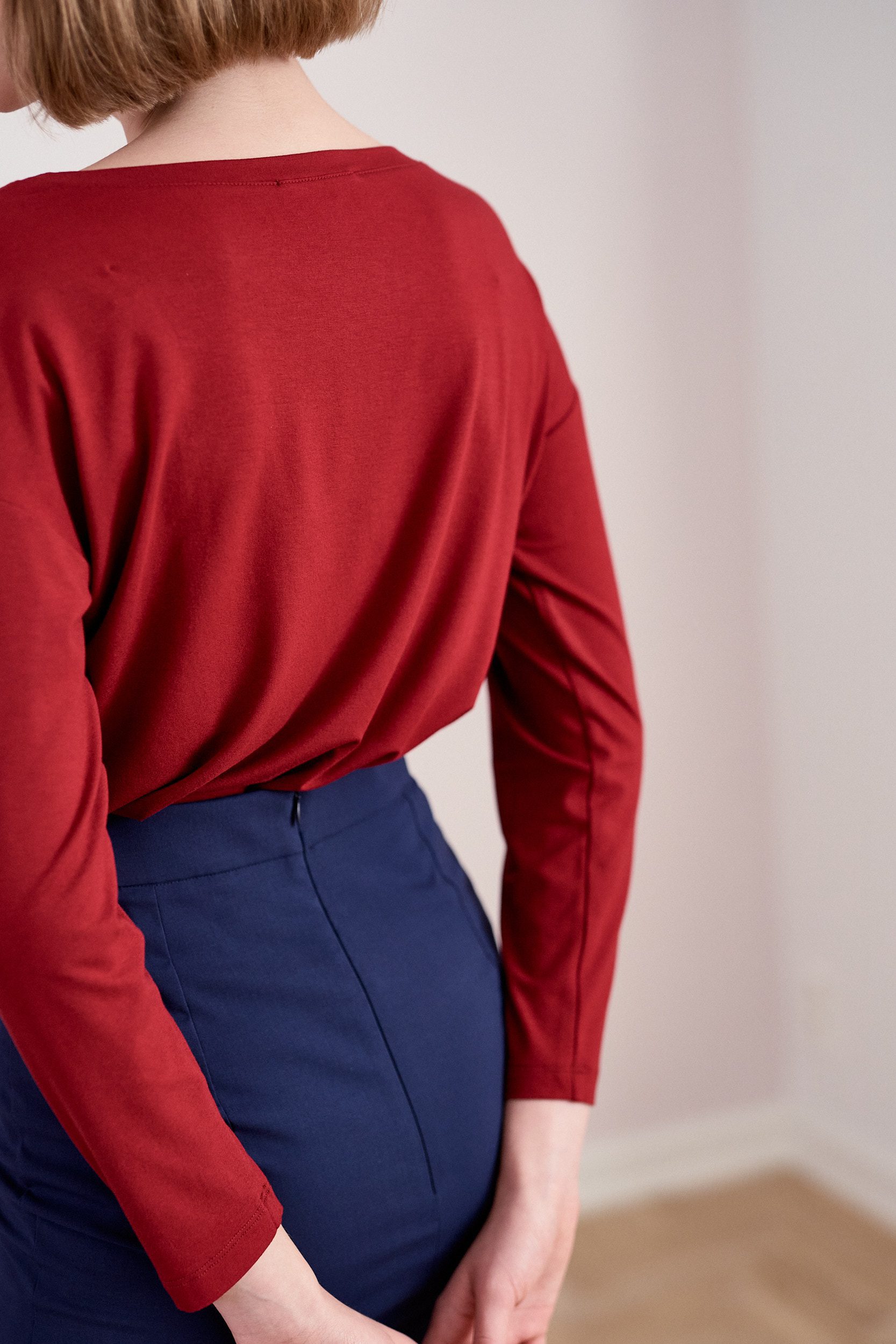 Dioniza to bluzka z długim rękawem i płytkim, okrągłym dekoltem. Uszyta jest z dzianiny wiskozowej z domieszką elastanu – materiału o wielu zaletach. Dzięki właściwościom higroskopijnym tkaniny, Dioniza zapewnia komfort noszenia w każdej sytuacji. Zawartość elastanu umożliwia dopasowanie do sylwetki, dzięki niemu dzianina doskonale się układa. Jest także miękka i bardzo przyjemna w dotyku. Poprzez stały dopływ powietrza nie pozwoli się spocić.