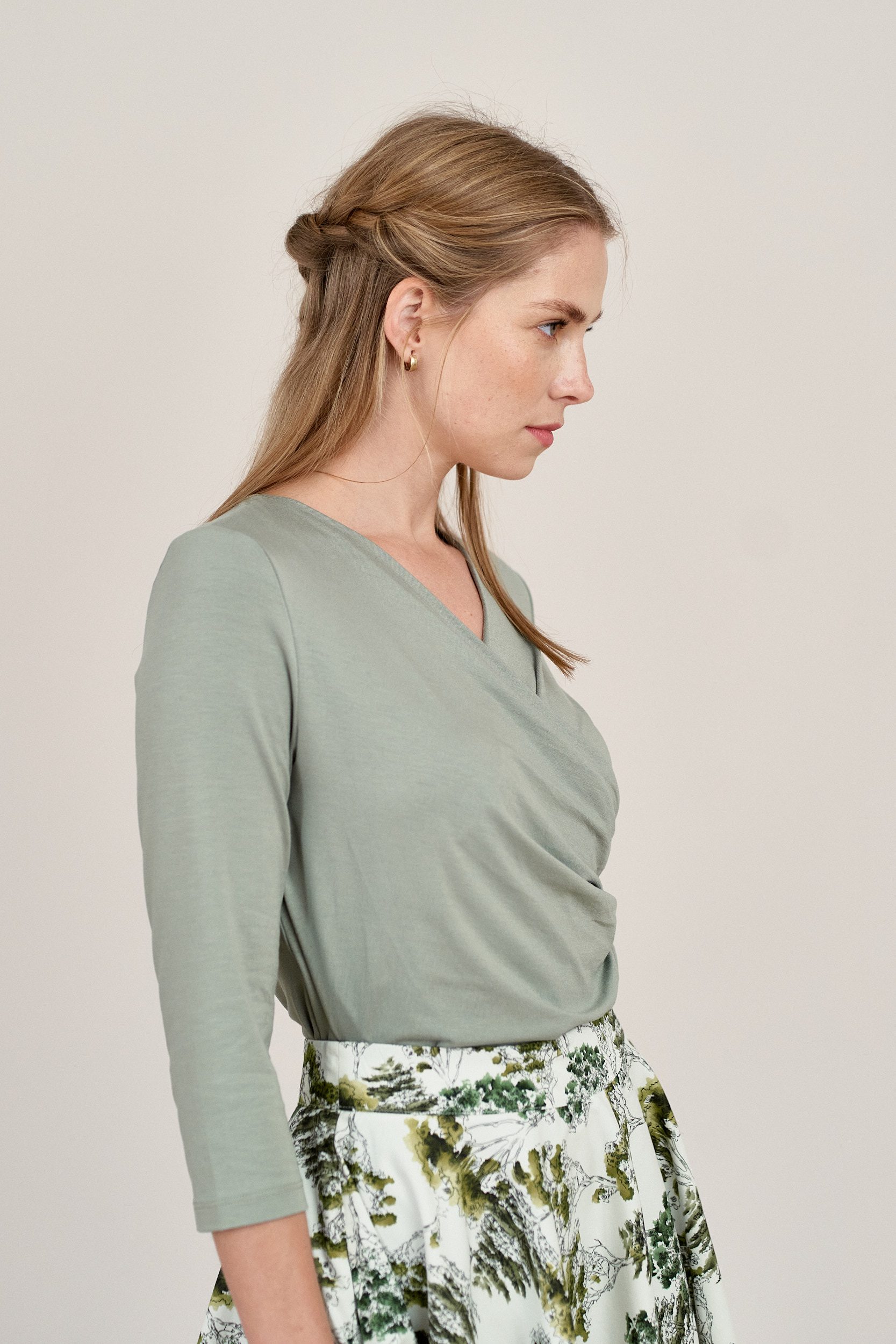 Estera to dzianinowa bluzka z kopertowym dekoltem, rękawem 3/4 i eleganckim marszczeniem z jednej strony talii. Połączenie wygody i szyku! Sprawdzi się zarówno na specjalne okazje, jak i codzienne wyzwania, jest także idealna do karmienia.