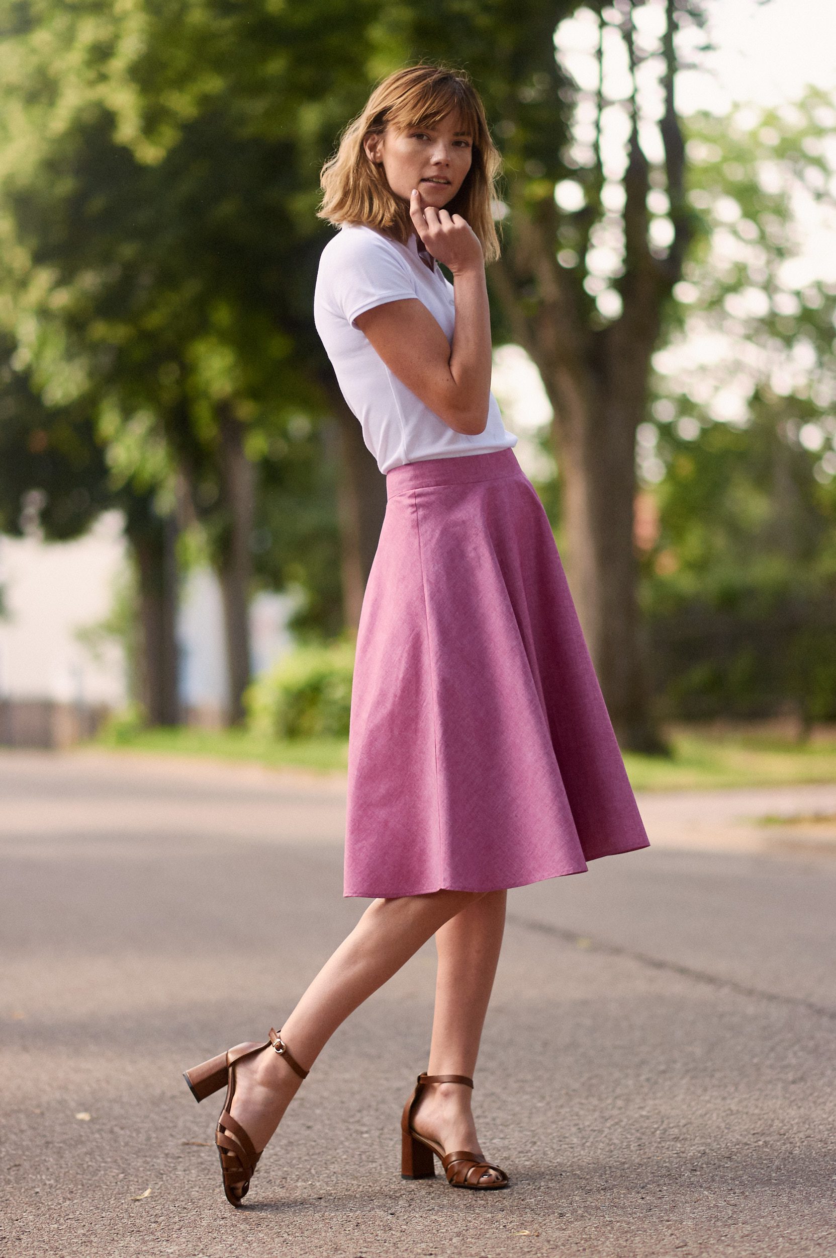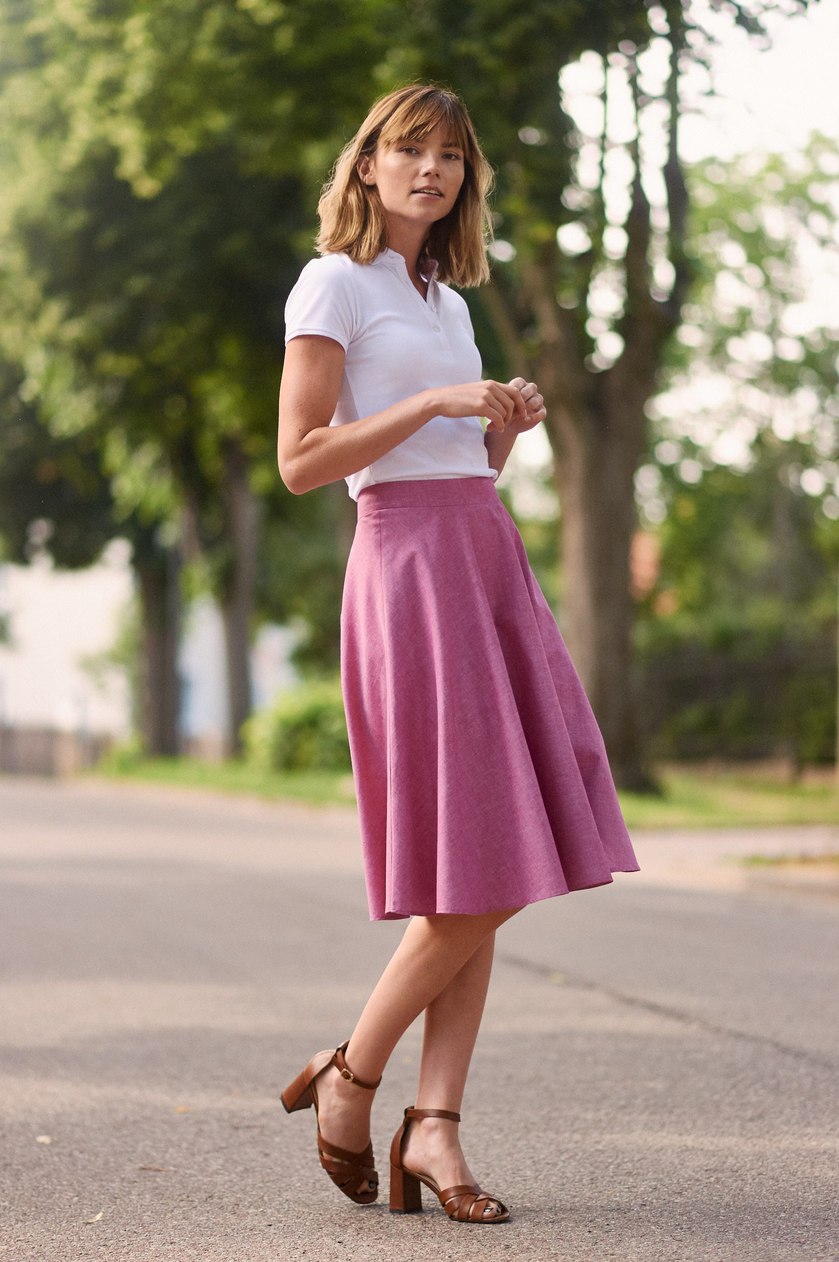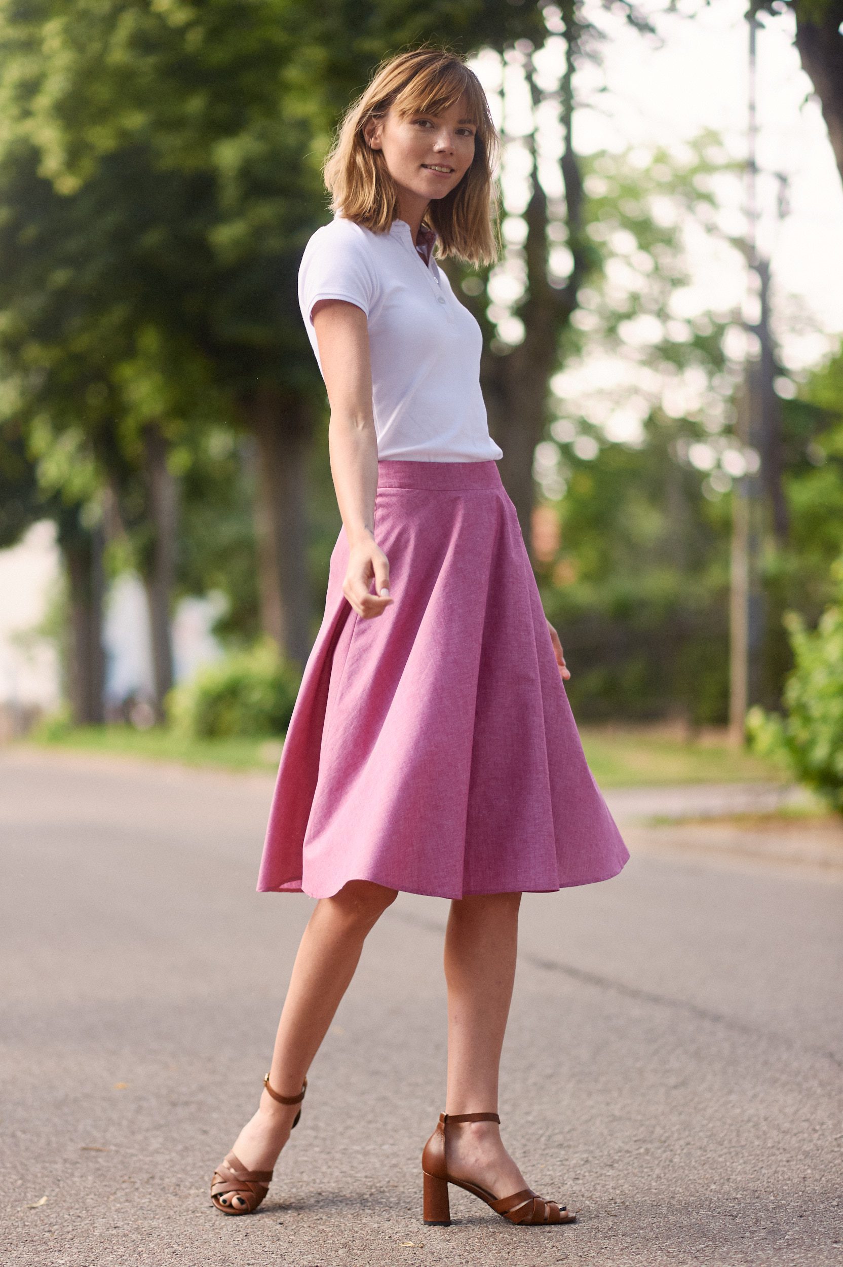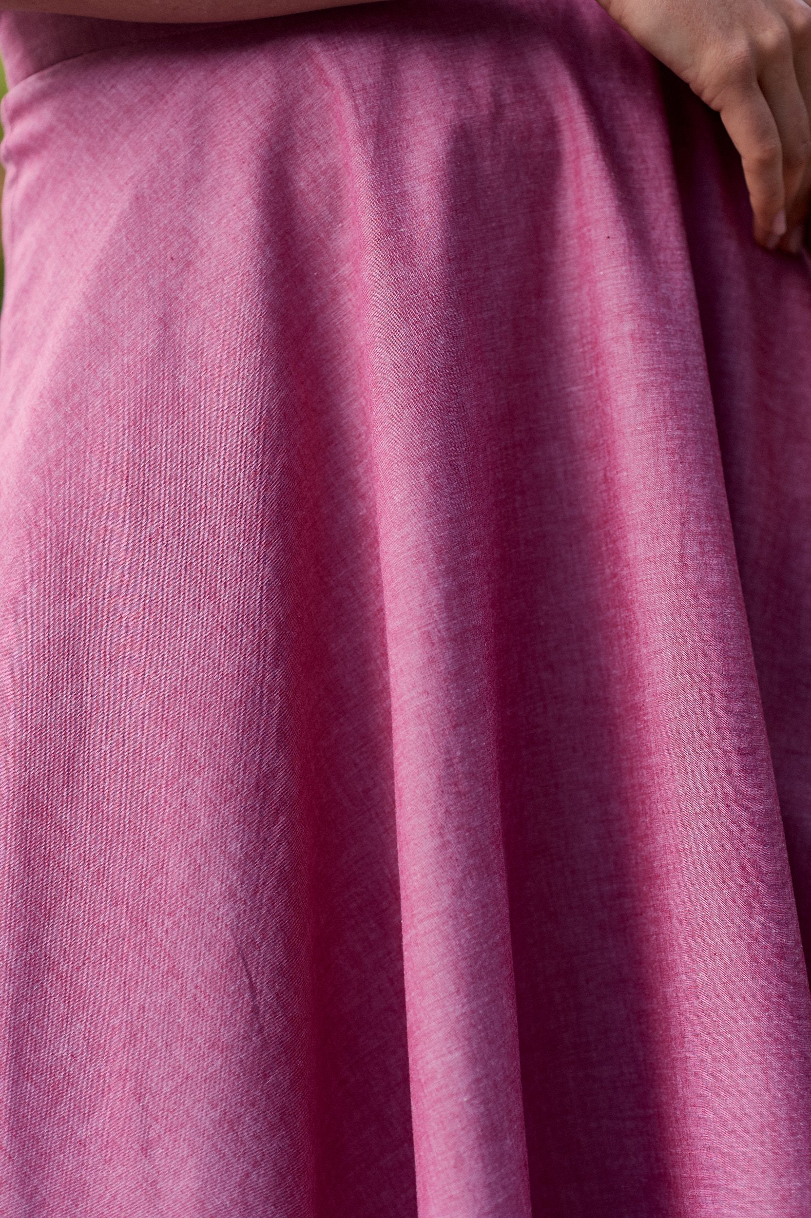 Carissa fuksja to spódnica z połowy koła z odcinanym pasem. Uszyta jest z przyjemnej w dotyku bawełny o splocie w stylu oxford. Posiada również delikatną, bawełnianą podszewkę, która nie podrażnia skóry, jest idealna dla alergików. Do zalet bawełny należy wysoki stopień absorbowania wilgoci, która jest równomiernie odprowadzana do otoczenia. Bawełniana spódnica zapewni komfort i wygodę w każdych warunkach.