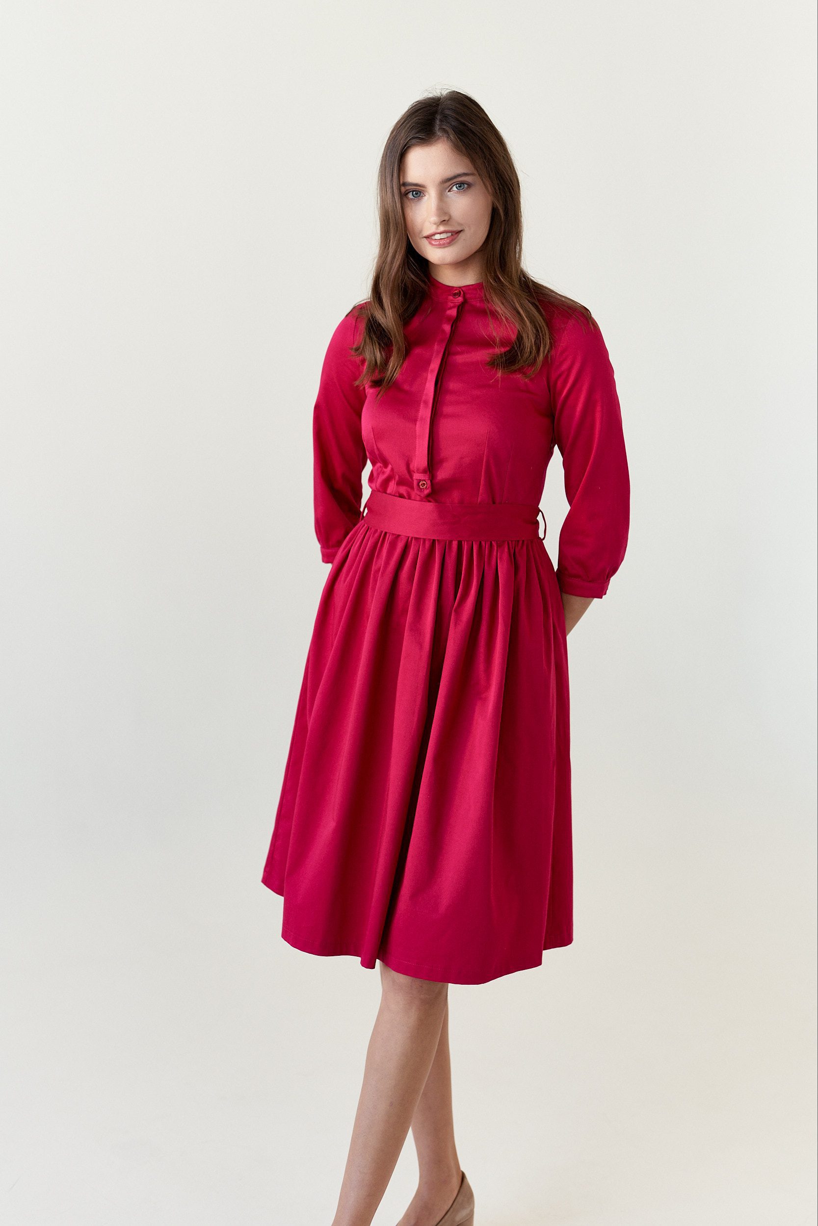 Sukienka Aglaia bawełna z elastanem czerwień perska