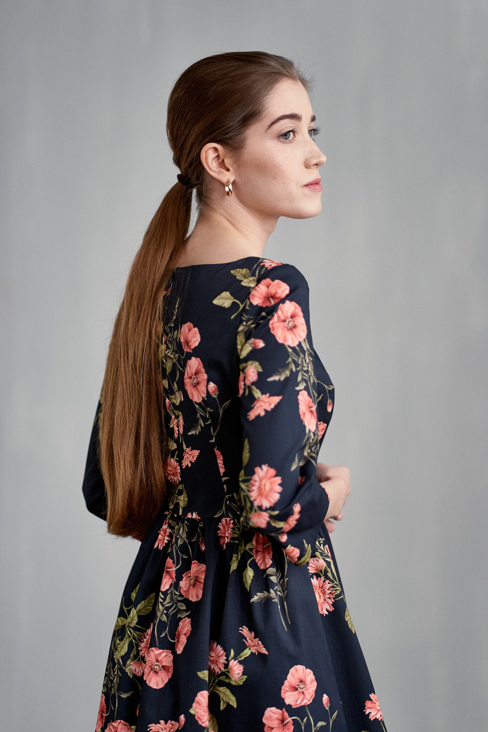 Anna to delikatnie rozkloszowana sukienka z marszczonym dołem, rękawem 3/4 i dekoltem w łódkę. Klasyczny fason, który niezmiennie zachwyca! Anna to siostrzany wariant Melii – różni się od niej długością (szczególnie polecamy niższym paniom) i nieco podwyższonym stanem.