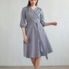 Duilin to sukienka o kroju kopertowym z wszytą szarfą i rękawem 3/4 wykończonym marszczeniem przy mankiecie. Dół sukienki uszyty jest z półklosza, pięknie faluje oraz opływa sylwetkę, podkreślając atuty figury.
