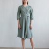Duilin to sukienka o kroju kopertowym z wszytą szarfą i rękawem 3/4 wykończonym marszczeniem przy mankiecie. Dół sukienki uszyty jest z półklosza, pięknie faluje oraz opływa sylwetkę, podkreślając atuty figury.