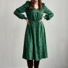 Matylda to nasze spełnione marzenie – kolejna sukienka do kolekcji, tym razem z rękawami z delikatnymi bufkami, które robią wrażenie! Na dole wszyliśmy ściągacze, których nie będziemy zachwalać – sama zobaczysz, jak wpływają na wygodę noszenia. Do tego dekolt V – jak lubisz! – ozdobna łezka z tyłu zakończona guzikiem oraz długość midi, która o tej porze roku wygrywa ze wszystkimi innymi. Świetnie prezentuje się z kozakami, ale i eleganckimi szpilkami. W talii sukienkę przewiązuje się tkaninowym paseczkiem.