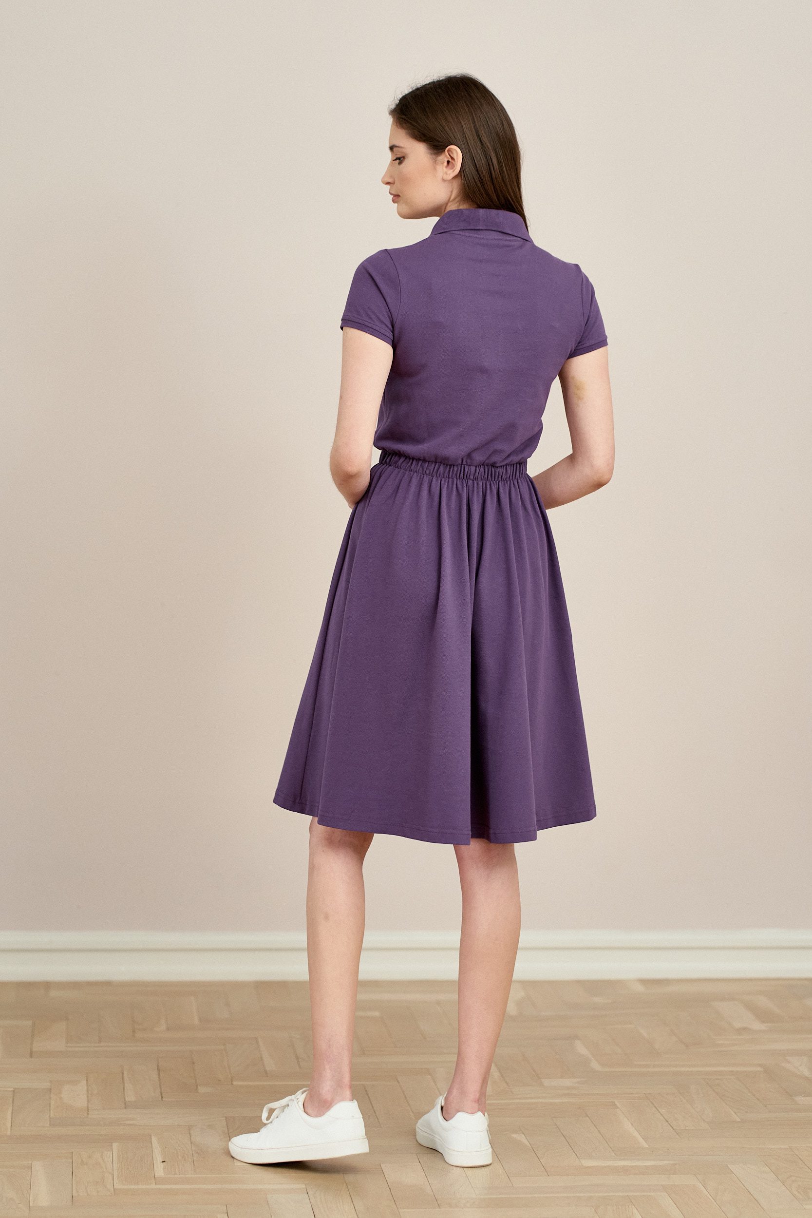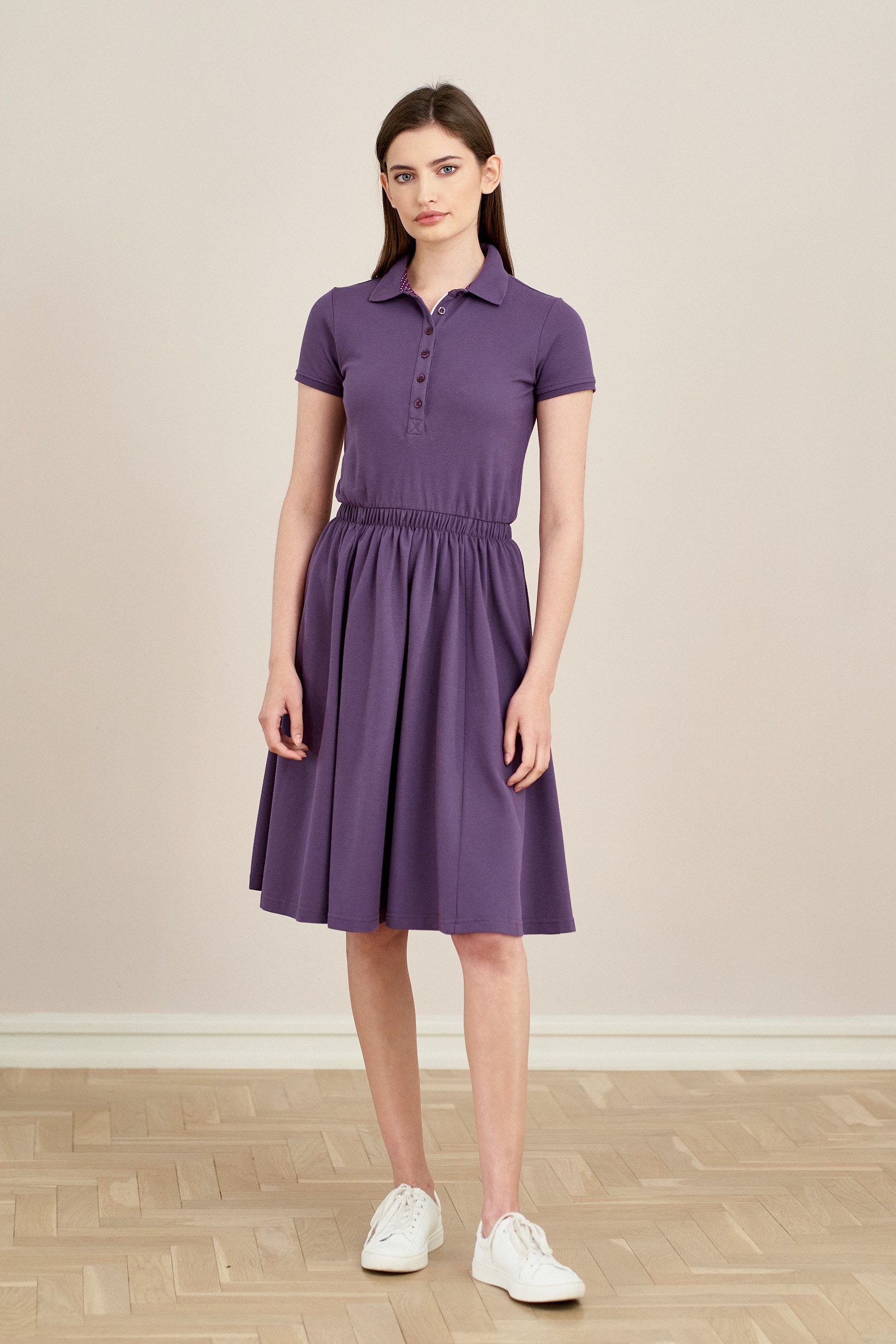 Klasyczna sukienka w lekko sportowym stylu swój początek wzięła od wkładanej przez głowę koszulki z kołnierzykiem, która zmieniła modę na kortach tenisowych. Ceniona za swój krój i codzienny styl – idealna do pracy, choć kojarząca się mocno z wakacjami!